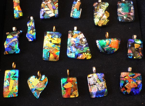 Unique designs in fused glass are one of my specialties. Here is a tray of some pendants.
